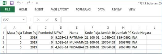 Contoh hasil export E-SPT Bukti Potong untuk 1721 - 1