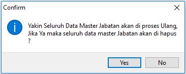 4. Klik Proses untuk mulai melakukan proses import, maka akan tampil pemberitahuan sebagai berikut. Pilih Yes  untuk melanjutkan (seluruh data master Jabatan yang lama akan terhapus) atau No  untuk membatalkan.